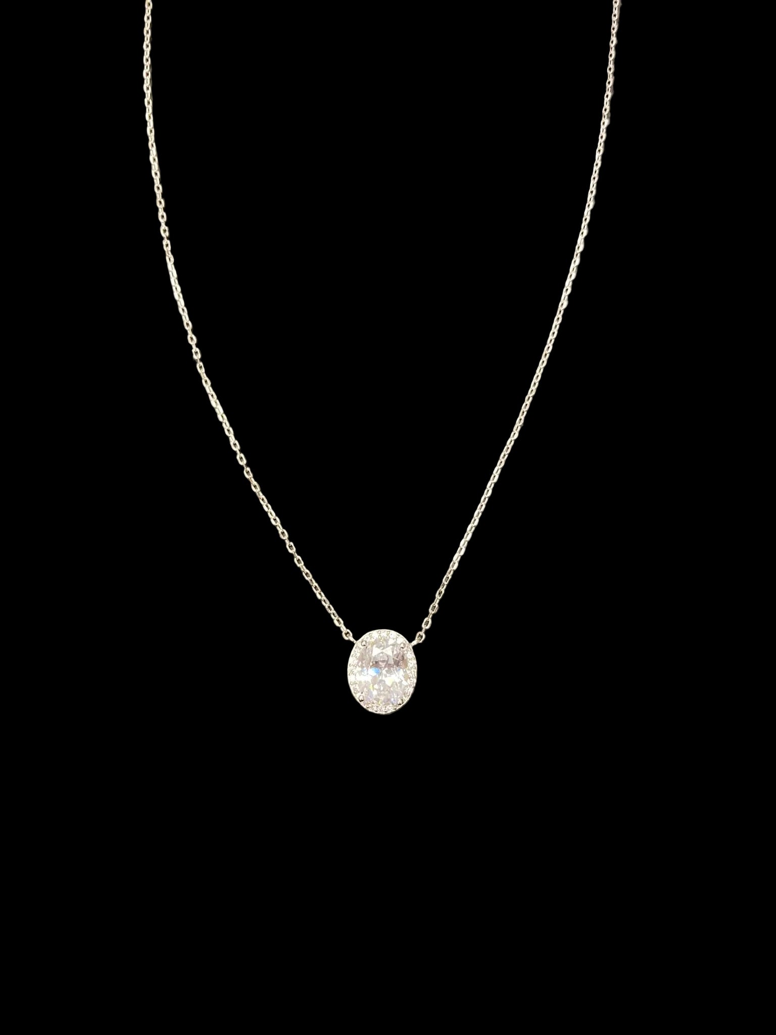 Sterling Silver Necklace Oval CZ Stone NCZ10060